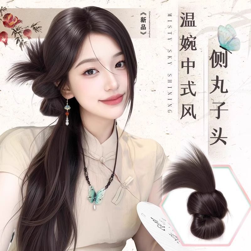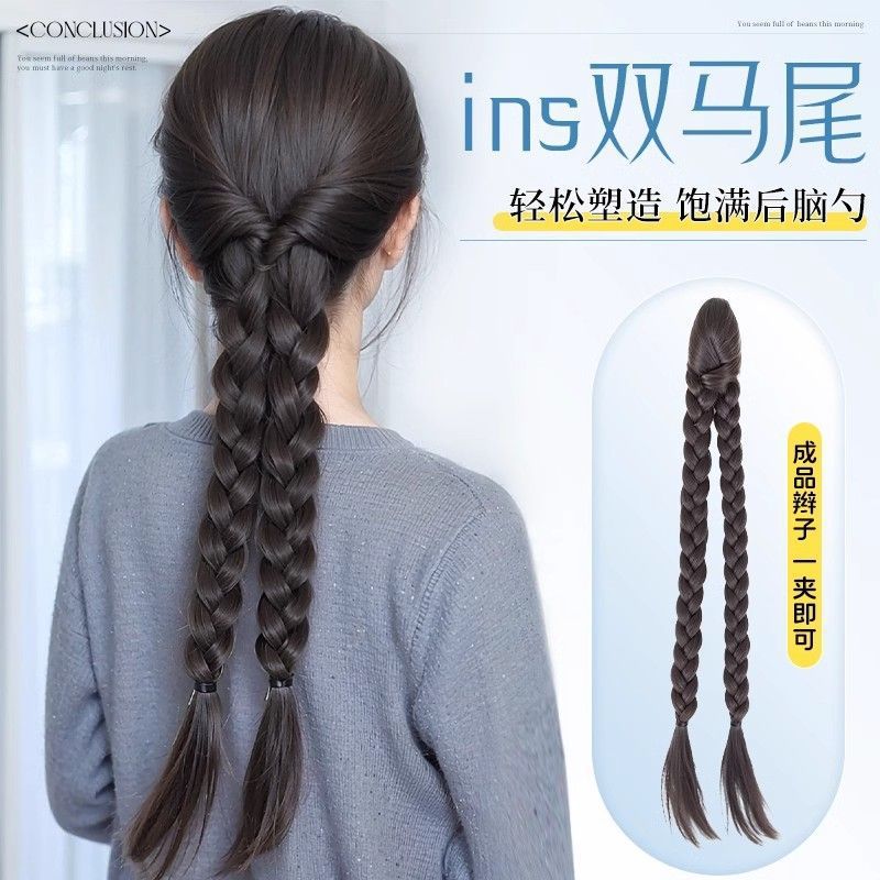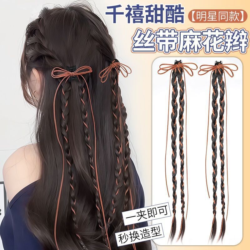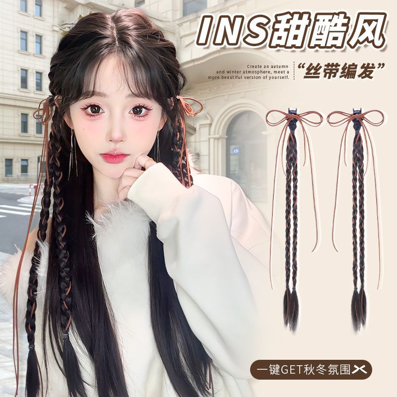 かつらのお下げの蝶結びは、ツインテールの麻花ins千年の甘いクールなリボンを挟んで、かつらのポニーテールを編みます。