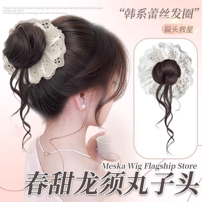 丸子のかつらの女性のレースの輪のつぼみの竜のひげの頭は自然の高い頭の頂の怠け者の後頭部のかつらの包みをシミュレーションします。