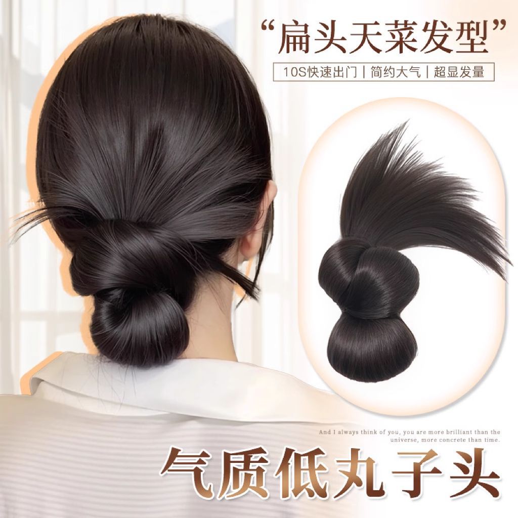 蝶結びの団子の頭のかつらの女性の自然なシミュレーションの髪は竜のひげの団子の頭の増発量のふわふわしている髪の神器をつかみます。