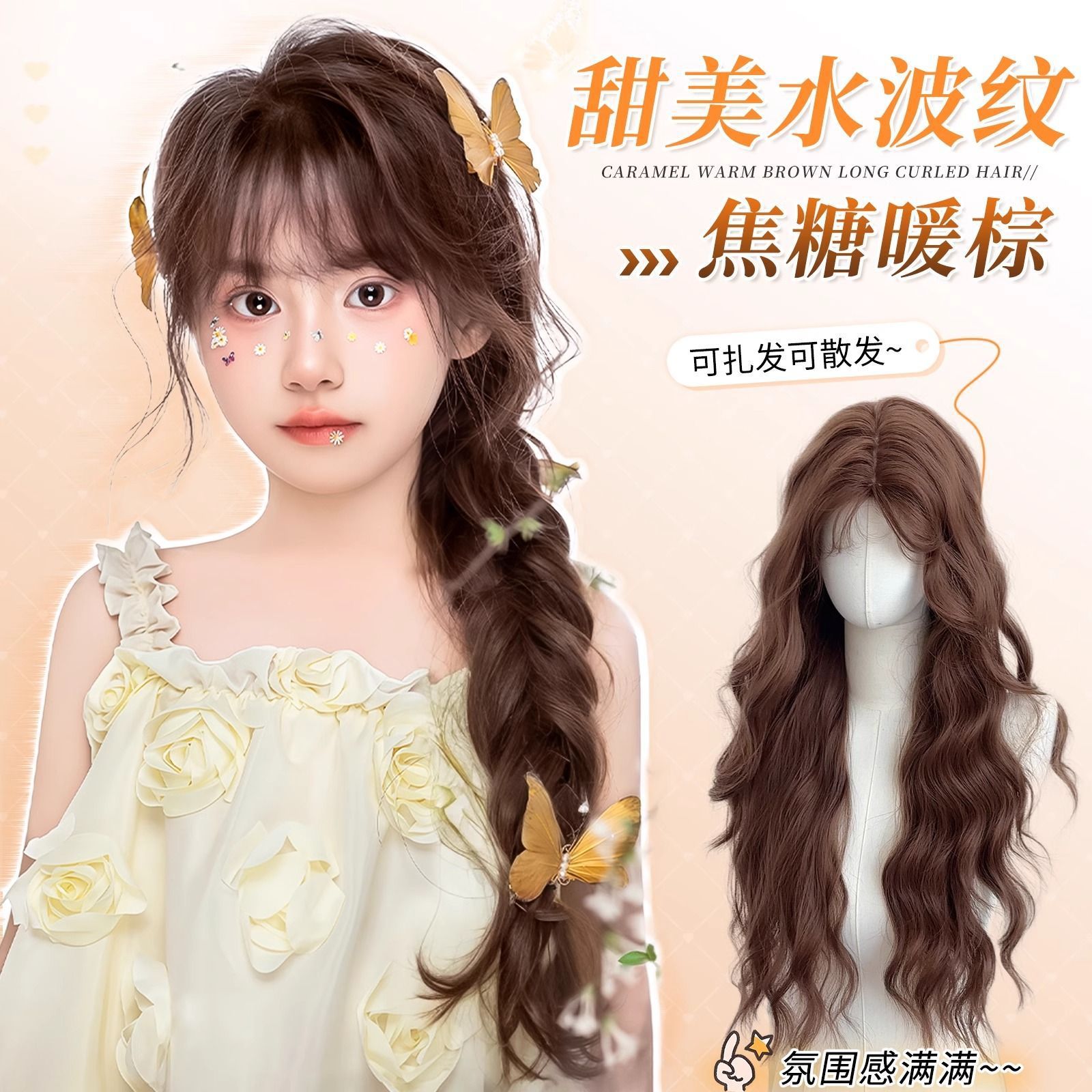【キャラメルウォームブラウン】女性用ウィッグ、胎児毛前髪、ウールカール、水波紋、万能コスフルヘッドギアタイプ