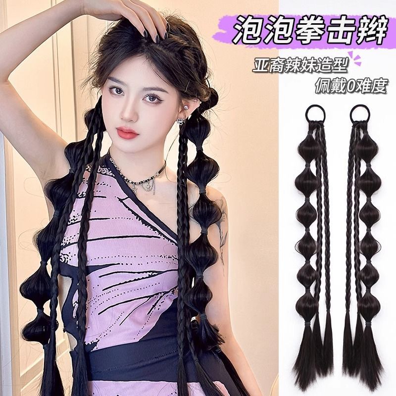 かつらの女性のツインテールの増発量y2kボクシングのポニーテール編みの甘いクールなギャルのドーパミンの提灯の泡のお下げ