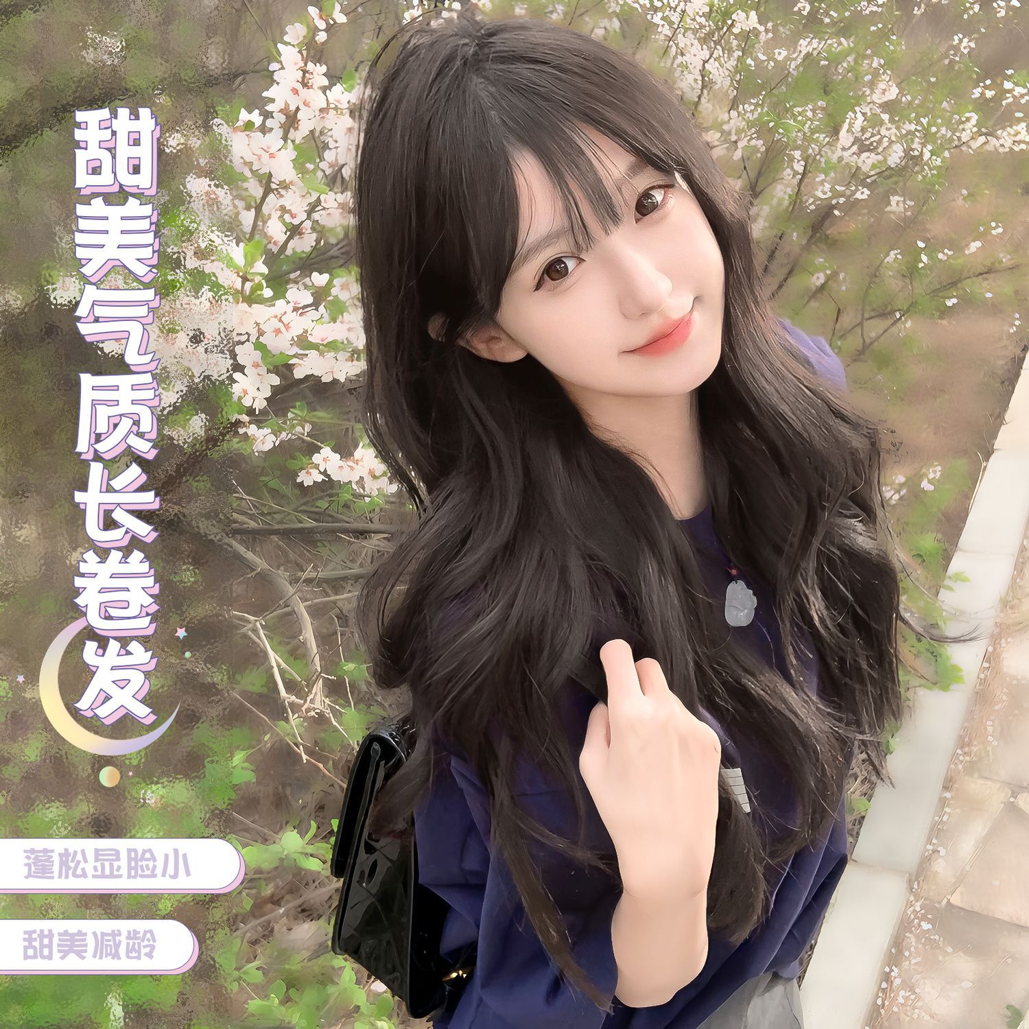 大きなウェーブのかかったロング巻き毛、春夏の雰囲気、ロング巻き毛、フルヘッドギア、ネットセレブ、薄い、ファッショナブル、自然なふわふわ人工毛