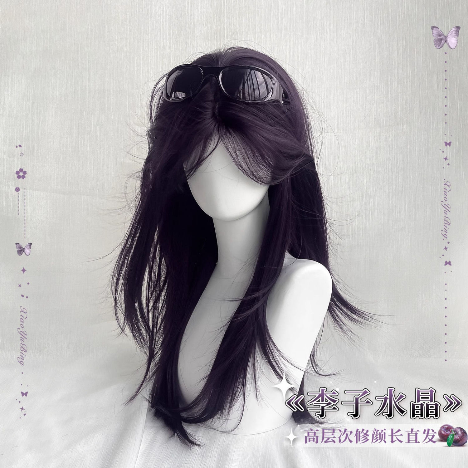 かつらの女性の黒ガロンの紫色の中で高い層の次感の長いまっすぐな髪の日常のcosの自然な全体のかつらの全頭カバー