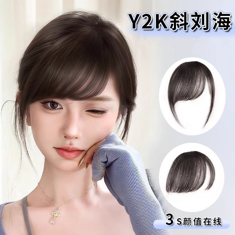 韓系古早感斜め前髪の女性は全真髪の額に偏っています。