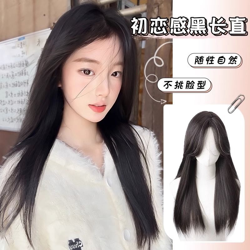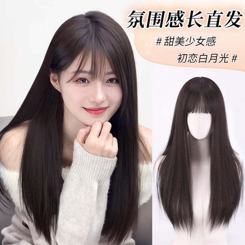 若蘭のかつらの女性の長い髪の雰囲気感の中で八の字の前髪の黒いまっすぐなかつらのセットの自然なシミュレーションの髪の全体のカバー