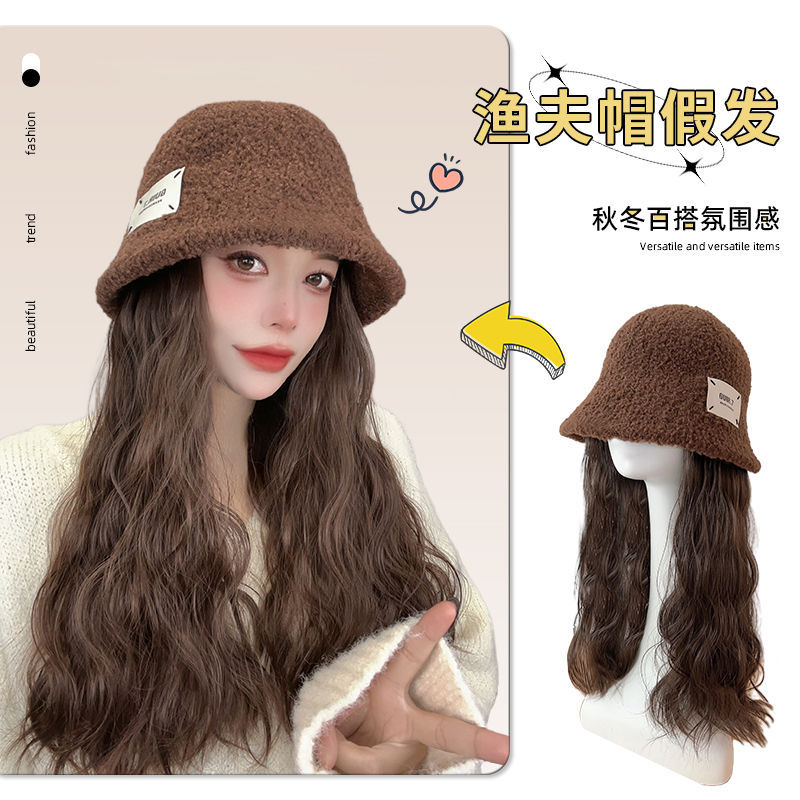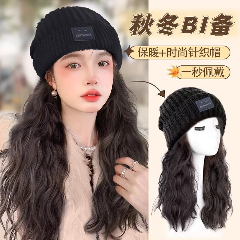 若蘭帽子かつら一体長巻き髪自然シミュレーション髪ファッション保温秋冬新型漁師帽全頭カバー