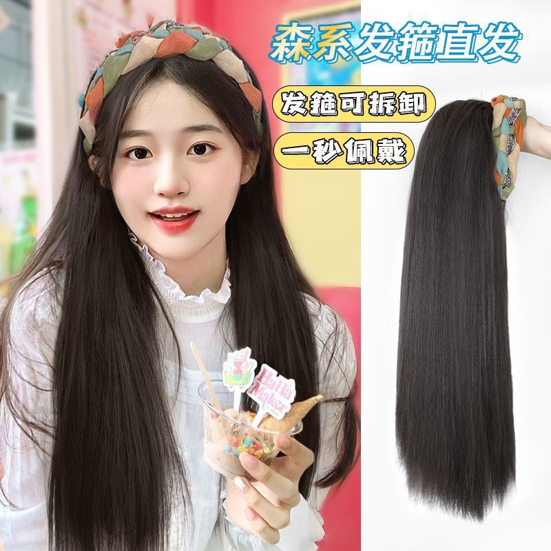 かつらの女性の森のカチューシャのかつらの長いストレートの一体のファッションの全体のカバーの新型の長い髪の毛はかつらの切れを取り外します。