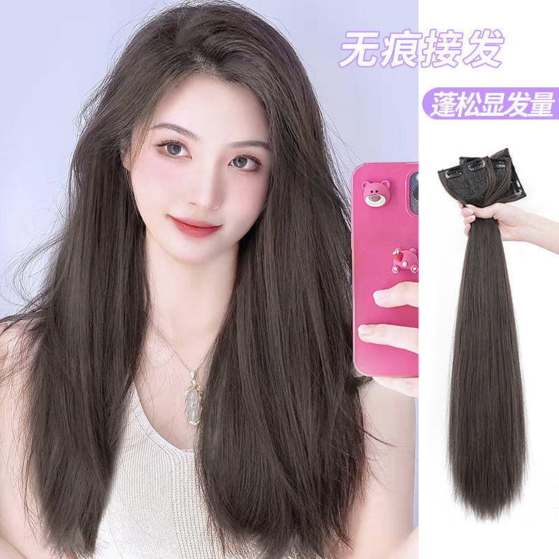 かつらの女性の長い髪の黒い長さのまっすぐな三枚式のふわふわした増発量のステルスのないまっすぐな髪のパッチのシミュレーションの髪の切れ