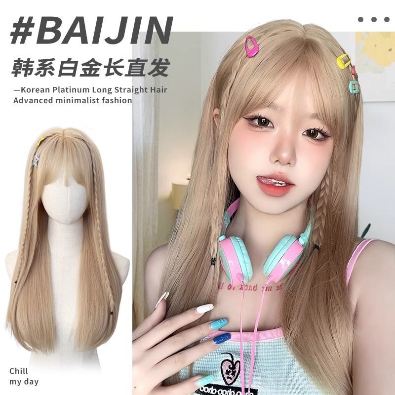 若蘭のかつらの女性の長い髪のファッションの自然なシミュレーションの髪の全頭セット式の韓国系のプラチナの長いまっすぐな髪の全体のかつらセット