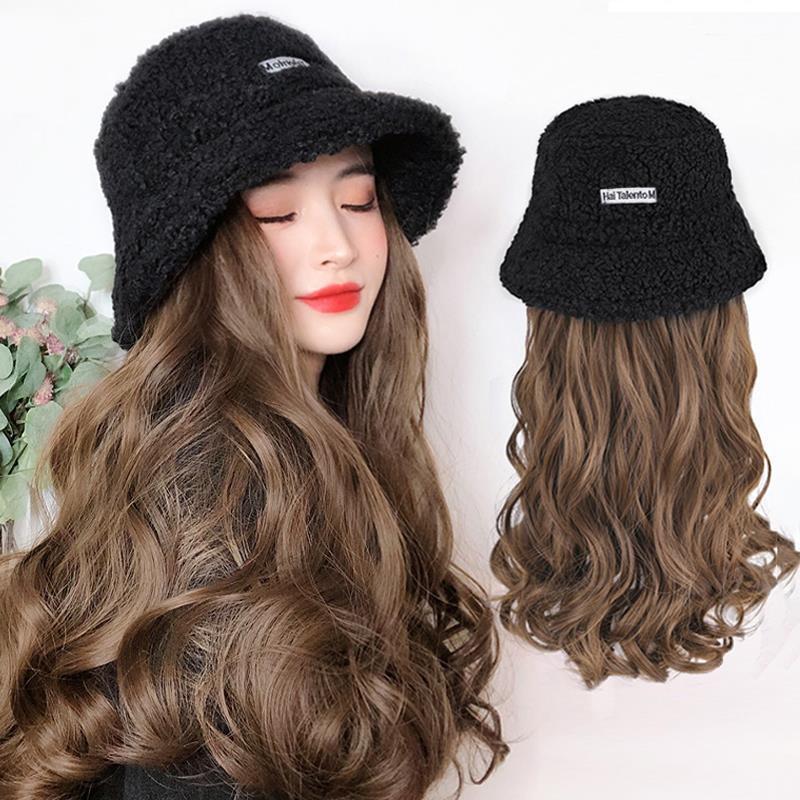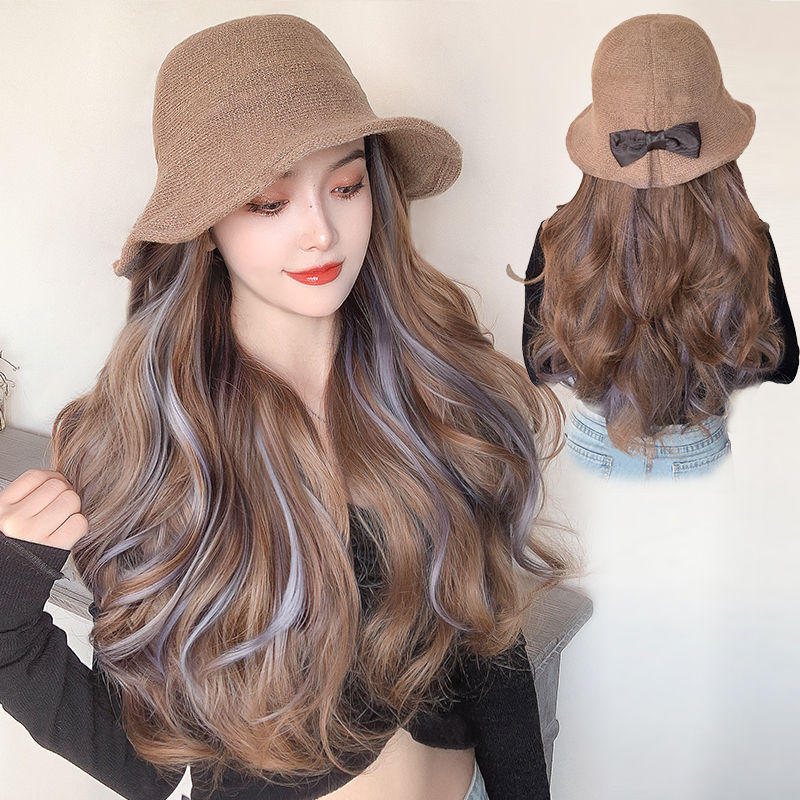 かつらの女性の長い髪の帽子のかつらの一体のファッションの四季のネットの赤い漁師の帽子は長いカールの全体のカバーを染めます。