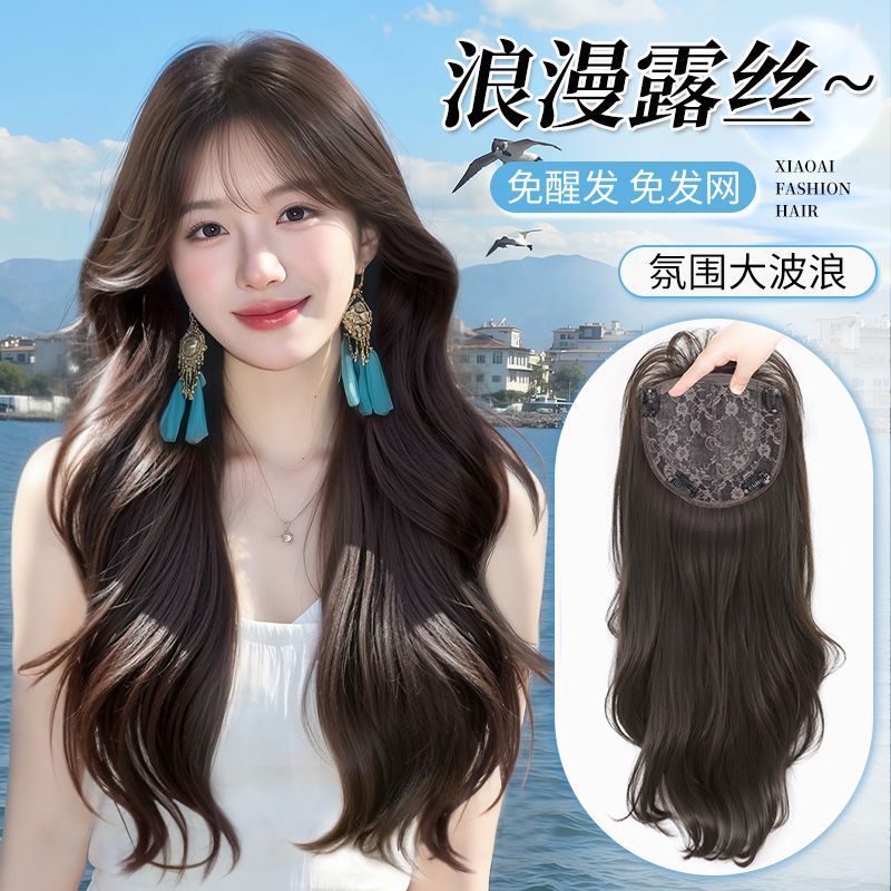 女性用ヘアネットなしウィッグ、長い巻き毛、大きなウェーブ、夏の新しいスタイル、目覚めのないヘア、ファッショナブルでシームレスな雰囲気のウィッグ