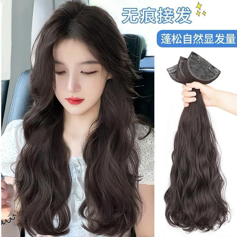 工場直販ウィッグ 女性用3ピースウィッグ ふんわりシームレスヘアエクステ 大きなウェーブ巻き毛エクステ ブラウンブラック