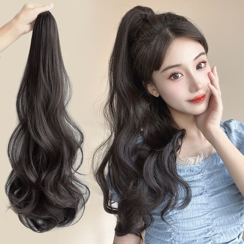 若蘭かつら女性つかみクリップ式ロングカール馬尾シミュレーション髪高馬尾ファッション自然大波かつら馬尾