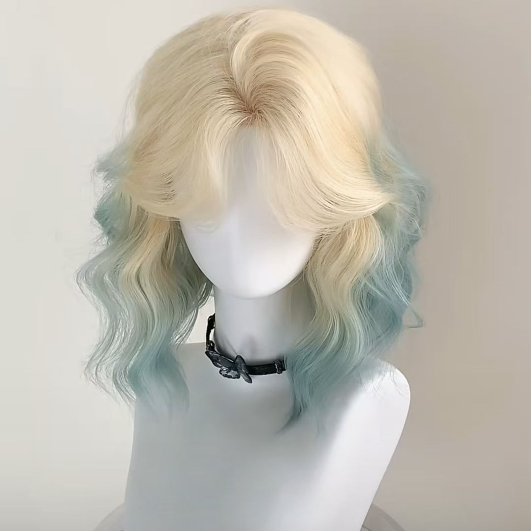 【天使の恋】かつらの女性の新しい卵の巻きの中でプラチナのグラデーションの氷の青い優しい質感のかつらを分けます。