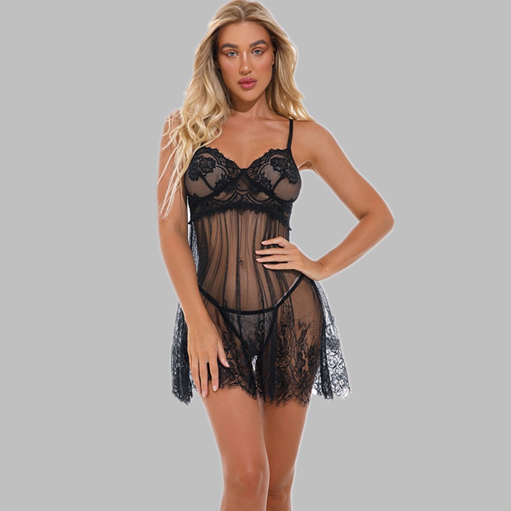 国境を越えた新型アマゾン女装レースまつげネット糸は趣味下着のセクシーな透視ストラップワンピースをつなぎ合わせた