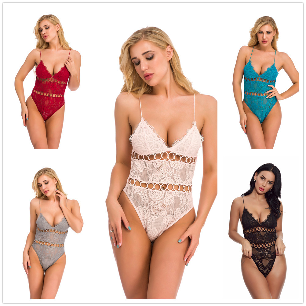 クロスボーダー速売通ソースebayアマゾン女性レース透視レース下着深v透視セクシー連体服