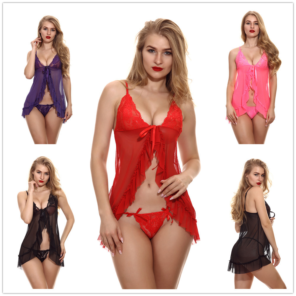 クロスボーダーの透視セクシーな下着の対外貿易の商品の供給源の深いvはセクシーな情緒の小さい清新なガーターの連体の服を現します。