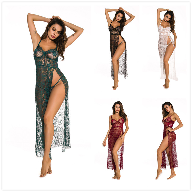 クロスボーダー2023新品女装セクシーレースストラップ趣味下着透視レースワンピースパジャマ