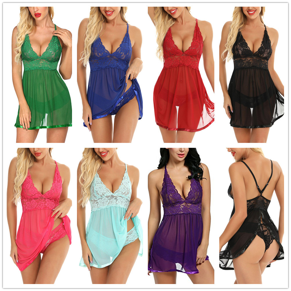 アマゾンの新型のセクシーなセクシーなパジャマのレースの網の糸は首のセクシーな下着の現物を掛けます。