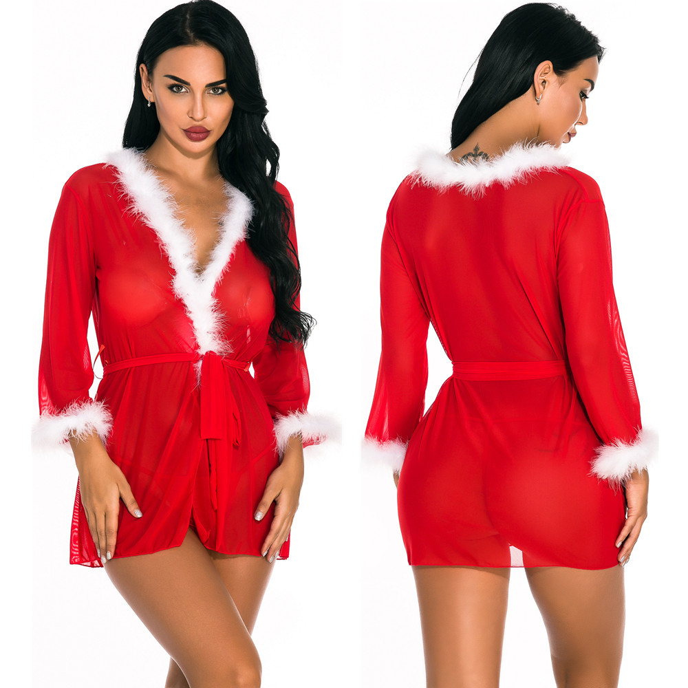欧米のセクシーな下着の役はクリスマスの服のセクシーな睡眠のスカートのセクシーな誘惑のレースの透明なゲームの制服を演じます。