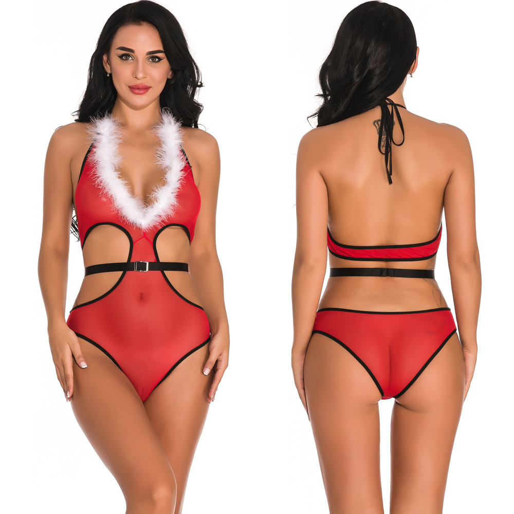 欧米の外国貿易アマゾンのセクシーなクリスマスのネットの糸の連体のクリスマスの趣味の下着の制服の実写図
