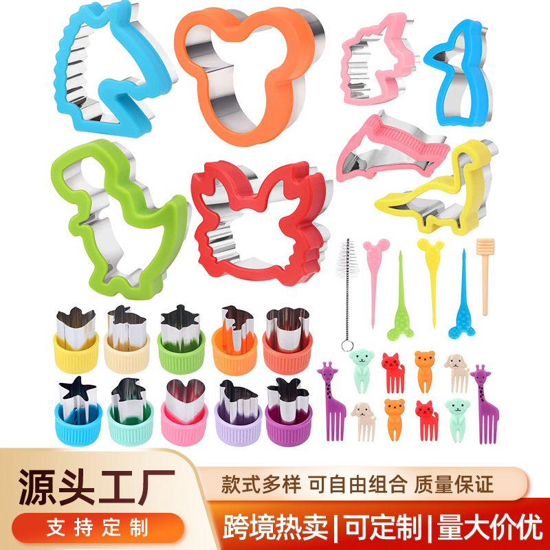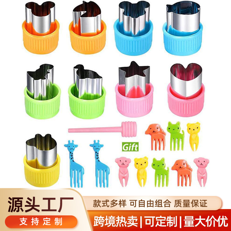 国境を越えた果物カットセットステンレスビスケットエンボス型アニメ野菜果物カッターPP全保護ハンドル