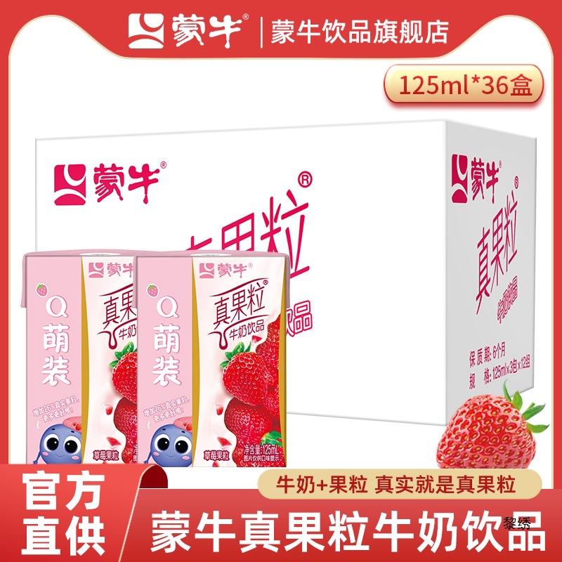 蒙牛mini真果粒いちご味飲料125ml 36箱の子供用朝食牛乳飲料旗艦店