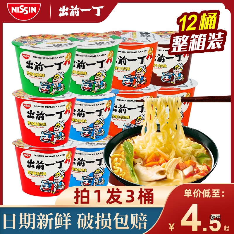 日清は前の一丁の桶の麺のインスタントラーメンの全箱のラーメンの12桶の5味の夜食のインスタントな桶を詰めて混ぜます。