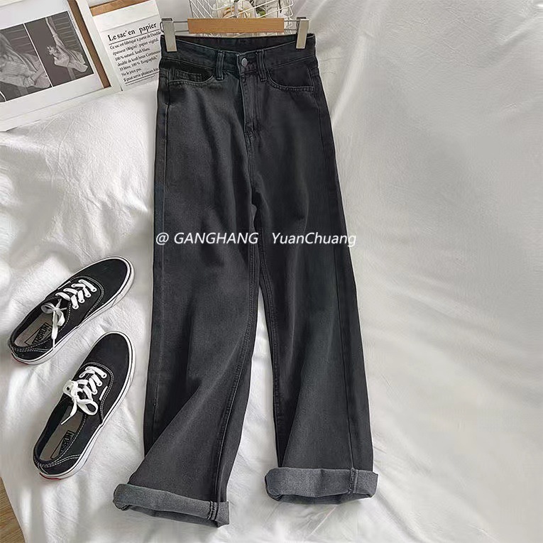 2023年新作春夏コンビネーションジーンズ女性ストレートゆったり着痩せワイド脚ハイウエスト垂れ下がっ感引きずる地ズボン