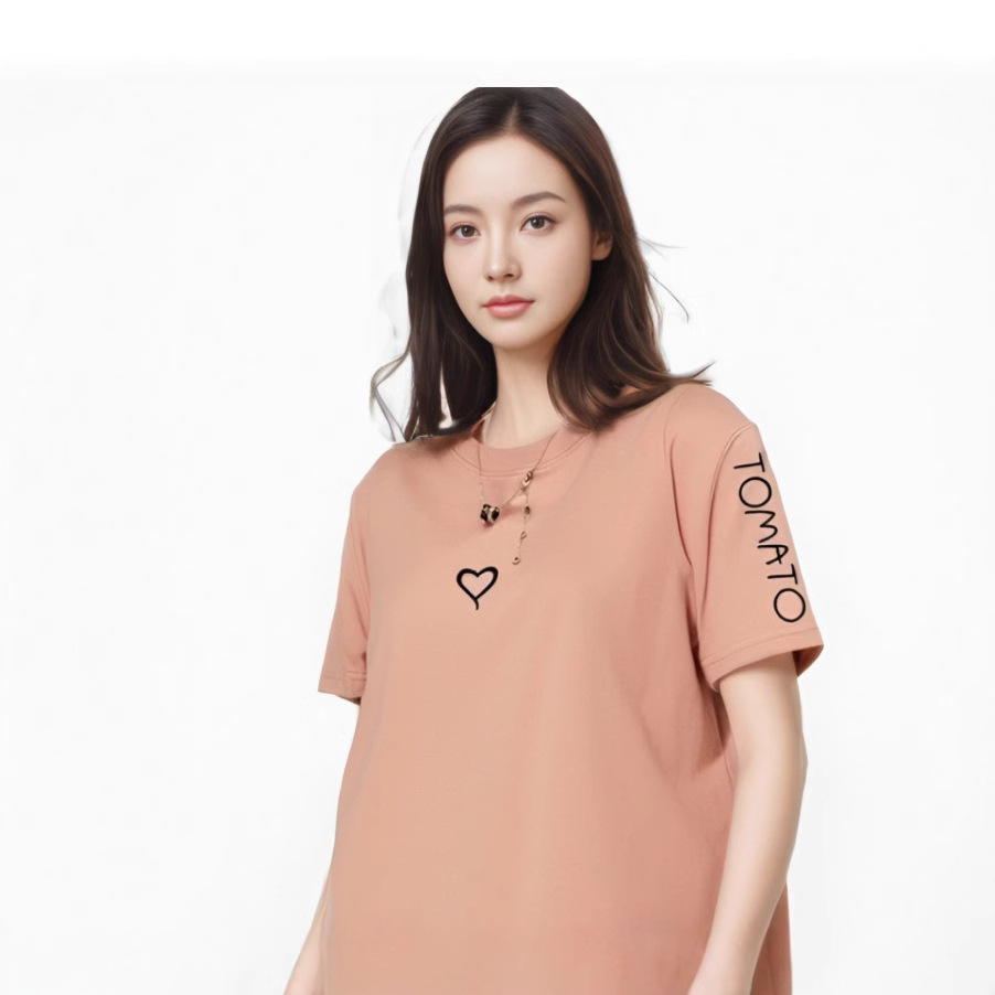 2023夏の女装上着韓国版ゆるい大きいサイズミディアムロングtシャツ白い半袖女性カジュアルtシャツ愛桃