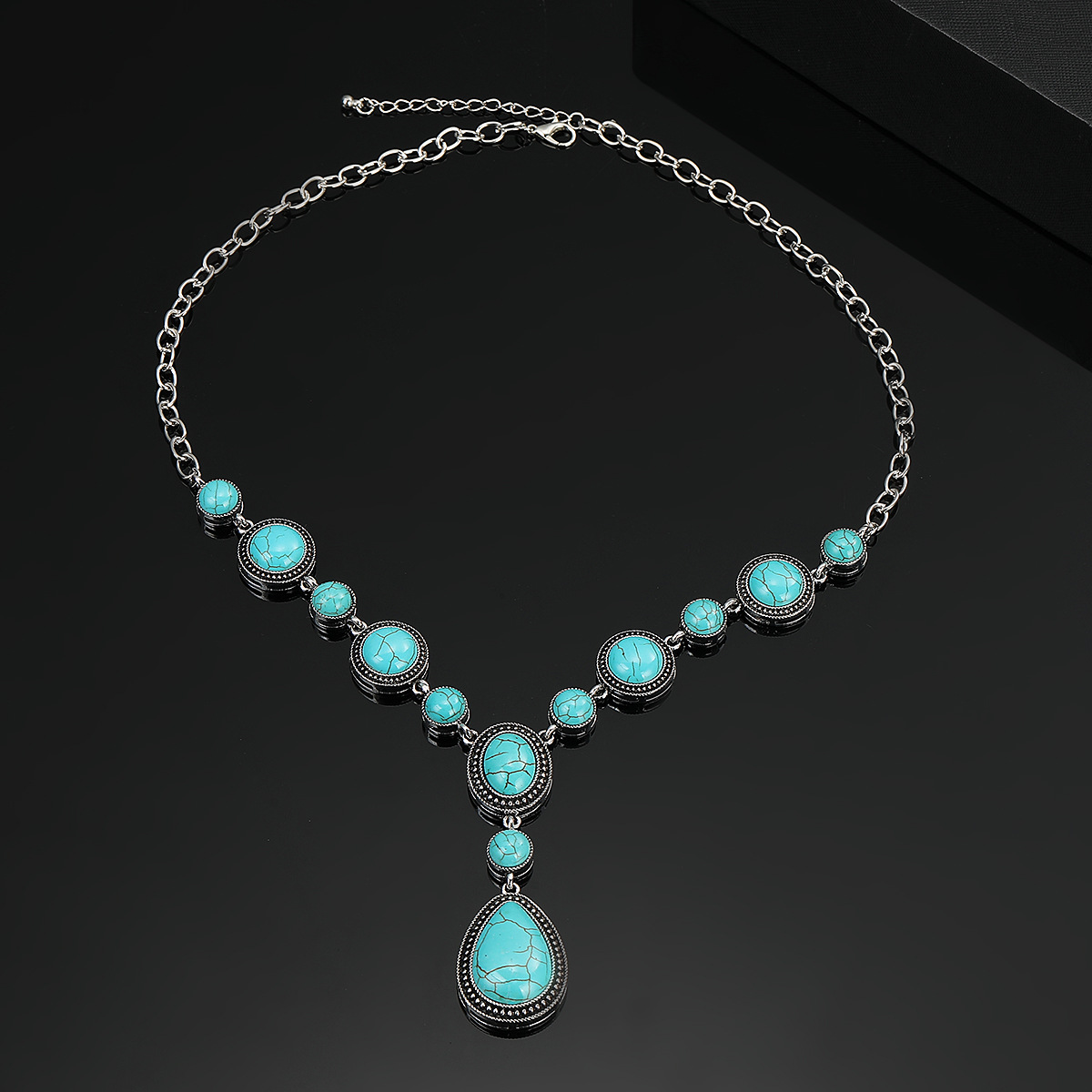ヨーロッパとアメリカのボヘミアンレトロターコイズスプレーブライトオイルファッション長方形ネックレスエスニックスタイル合金アクセサリージュエリー