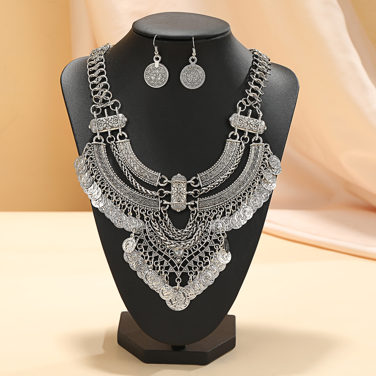 レトロクリエイティブウォータードロップペンダントネックレスパーソナライズされた誇張エスニックスタイル幾何学的なラウンドジュエリーセットメーカー卸売