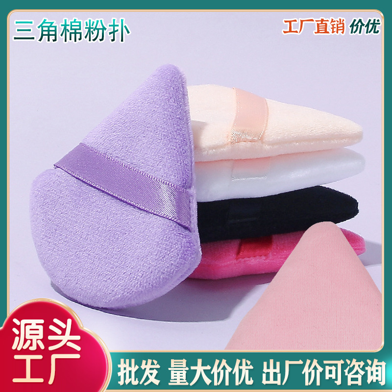 卸売りミニ指三角トランペットリボン散粉パフ乾湿両用植毛化粧は柔らかい死角がない