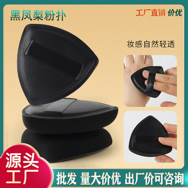 三角パフ短毛乾燥粉散粉パフ立毛化粧両面超ソフトスポンジクロスボーダーケース黒パフ