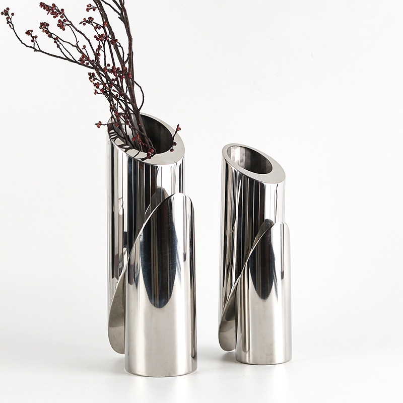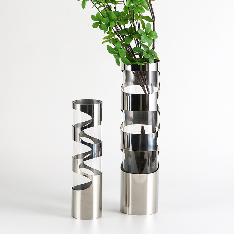 芸術透かし彫りステンレスガラス花器花瓶置物高級感レストランホテルクラブハウス見本間装飾品