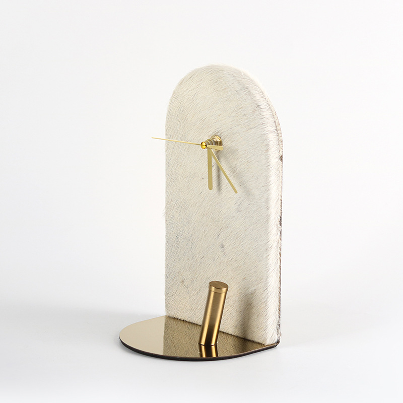 現代の軽豪華な馬の毛の金属の時計の時計の置物のアイデアの家庭の客間の見本の部屋のホテルの置き時計の装飾品をまねます。