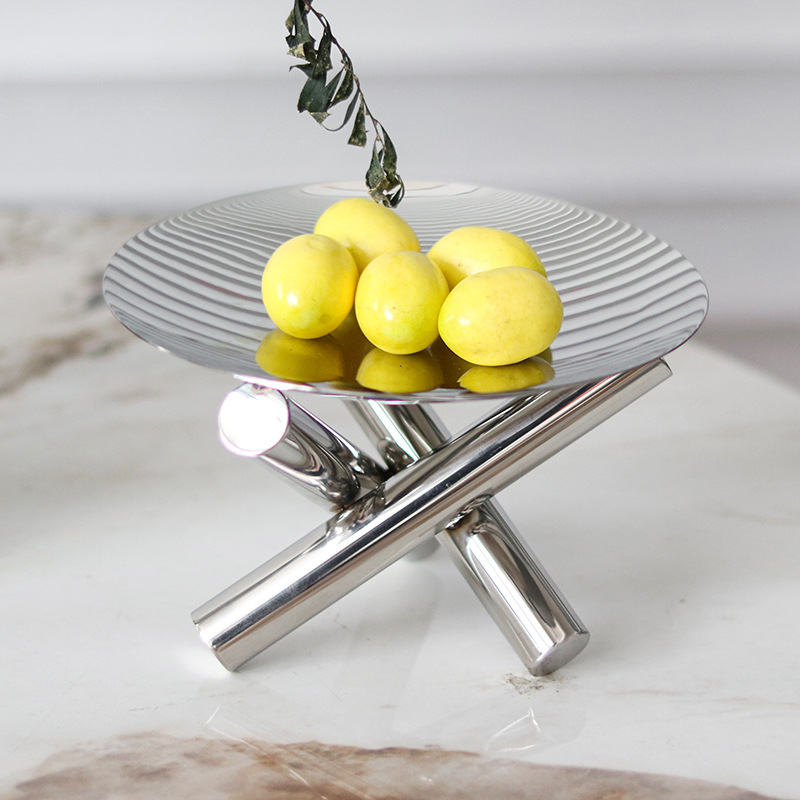 現代の軽豪華創意高脚三叉円形果物皿置物売り場見本間収納トレー装飾品