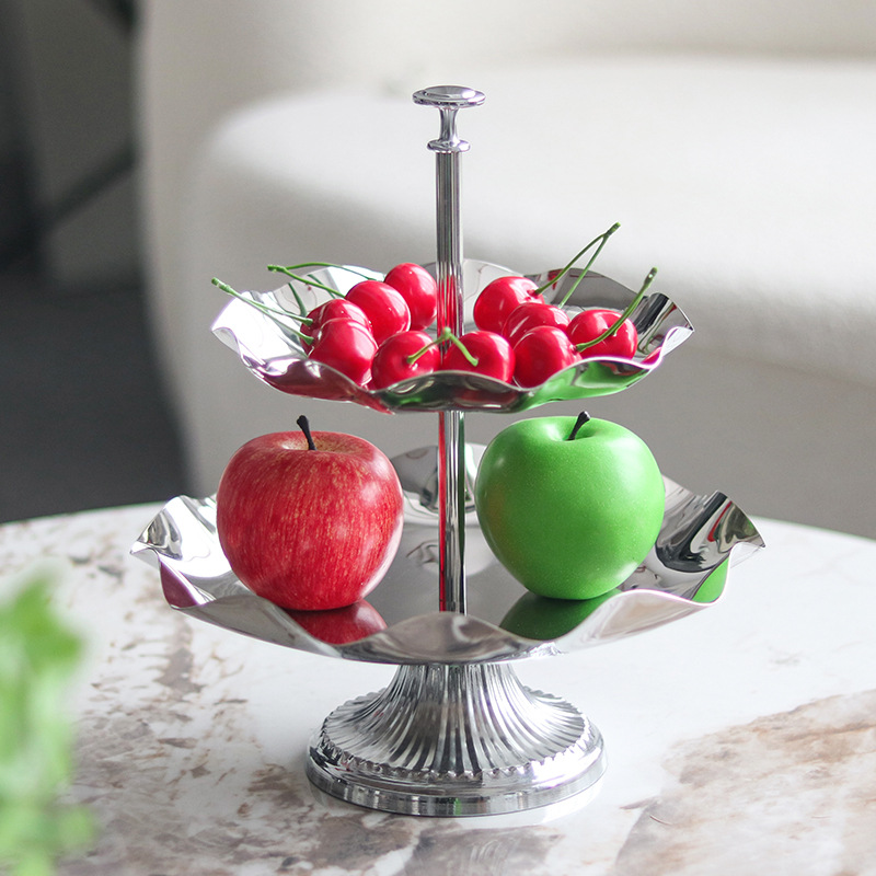 現代の軽豪華な創意レースの果物皿の置物の売り場の二重のお茶のお菓子のお菓子のお菓子の置物