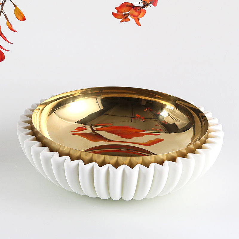 軽くて豪華な新中国式の果物の皿の置物のサンプルのホテルの別荘の会のテーブルの丸い間食の乾燥している果物の碗の装飾品