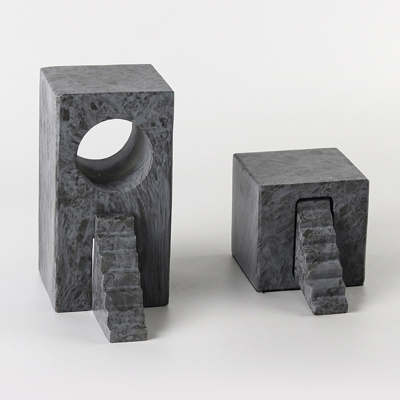 現代の軽豪華な大理石の装飾品のサンプルの部屋の別荘の抽象的な芸術の建築の階段の幾何学の階段の装飾品をまねます。