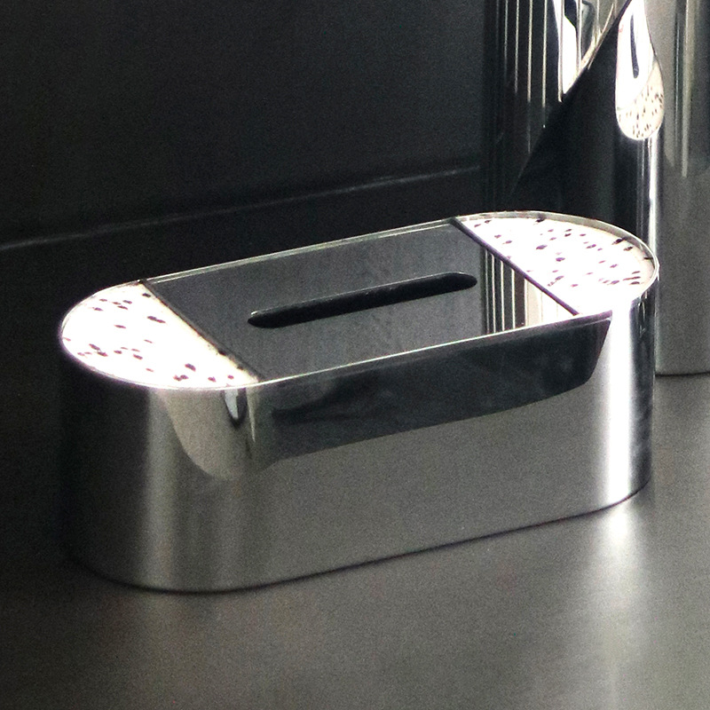 現代の軽豪華な置物ステンレスの斑点は馬の毛のティッシュの箱のサンプルの間のレストランの創意の引き出しの装飾品に似せます。