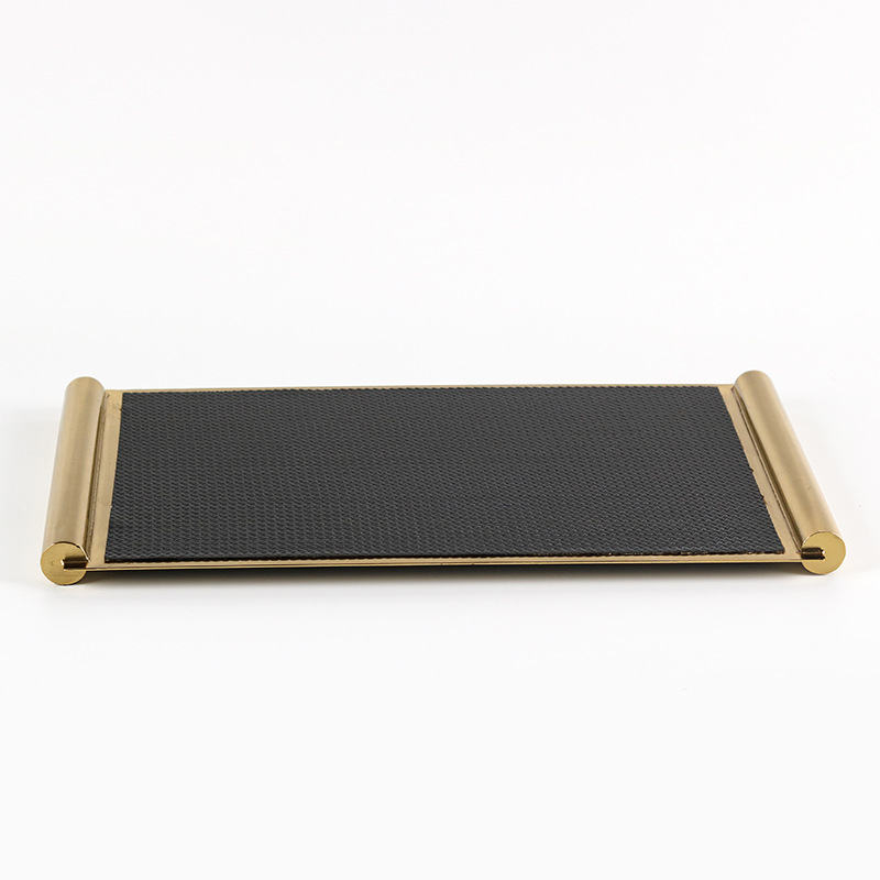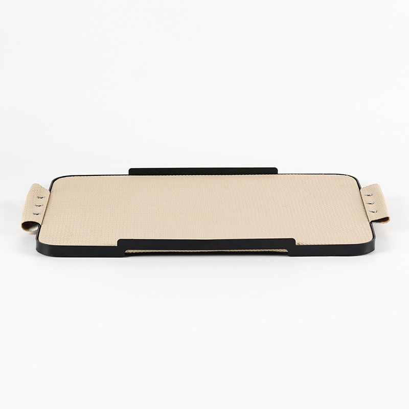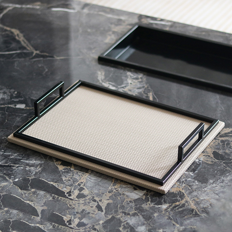 現代の軽豪華な長方形の皮質のトレーの置物のサンプルの部屋のホテルの書斎の玄関の装飾の収納盤の飾り物