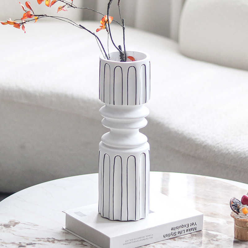 古代ギリシャローマ柱ストライプ花器置物ヨーロッパ風挿し花瓶レトロリビングホテル民宿別荘装飾品