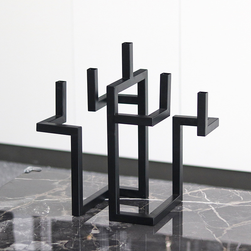 北欧の幾何学的な曲線の5つの燭台の置物のデザイナーの見本の部屋のホテルのテーブルの正方形の管のろうそく台の装飾品