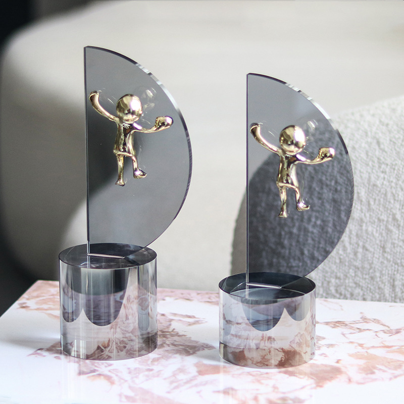 透明シンプルなモデルルームリビングルーム抽象現代小金人物彫刻芸術品ホテル室内水晶置物