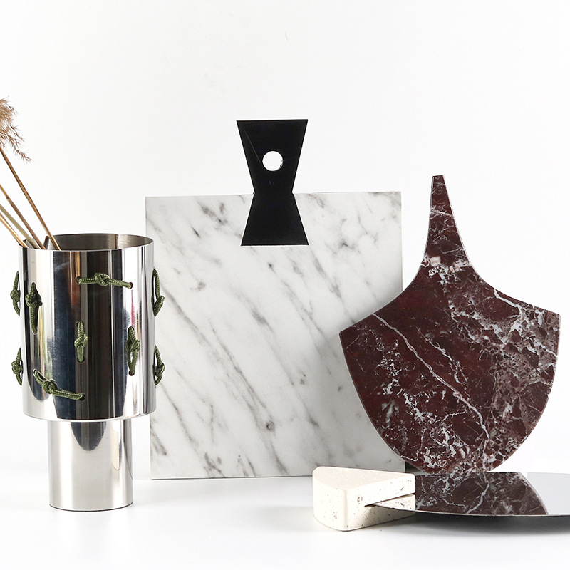 シンプルで現代的な大理石の不規則な幾何学のトレーの置物の見本の部屋の売り場の玄関のお茶の装飾品をまねます。
