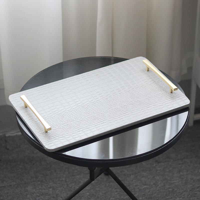 軽くて豪華なワニの紋様の金属の皮革の取っ手の収納トレーの客間の玄関のホテルのテレビの戸棚の柔らかい服の家庭の装飾品