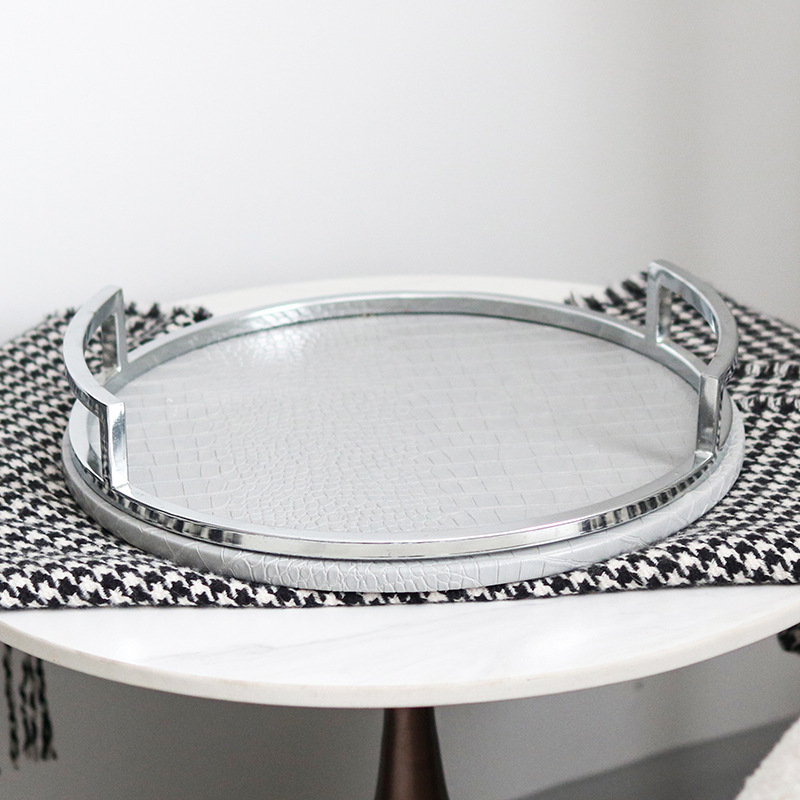 高級感ワニ紋革円形香薫トレー見本室ホテル民宿軽豪華収納装飾品置物