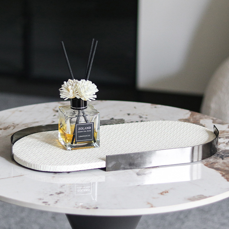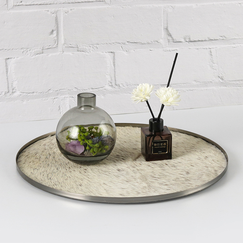 軽くて豪華な皮革は馬の毛の円形のトレーをまねて客間の玄関のホテルの軟装の家の香薫の収納盤の装飾を並べます。
