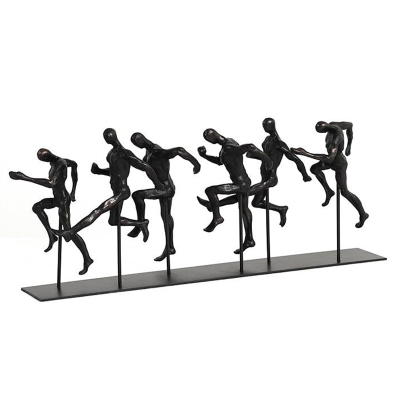 創意的な走る人物の運動彫刻陸上競技の組み合わせは現代の抽象的なサンプルプレートの間のデスクトップの家庭の装飾品を並べます。
